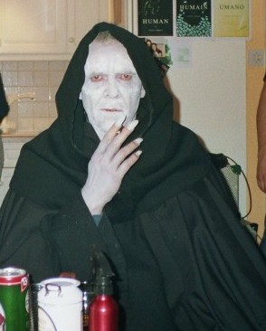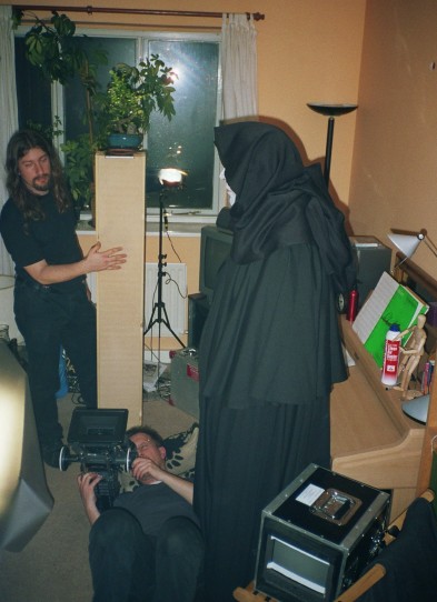 | Nigel Winder almost finished by the makeup artist as "the personified death himself" on set | |||||